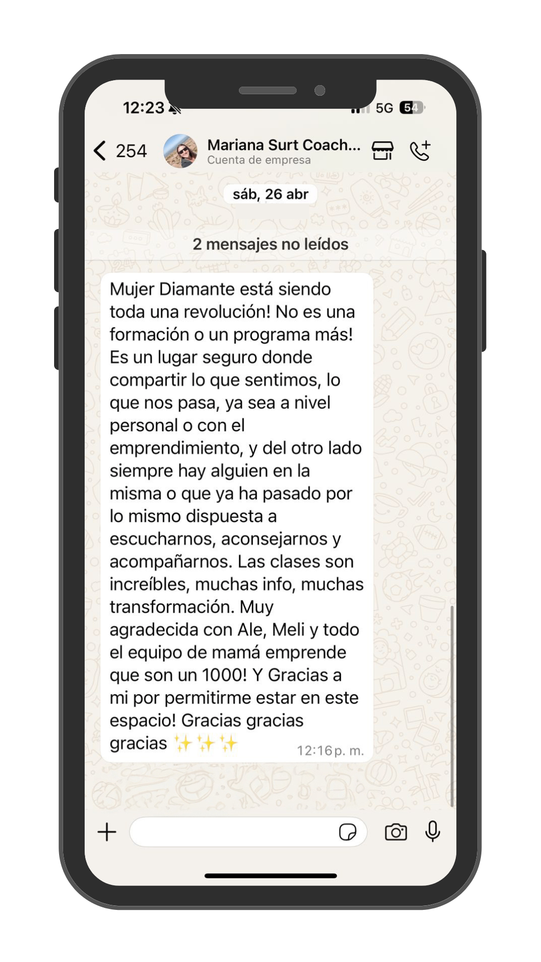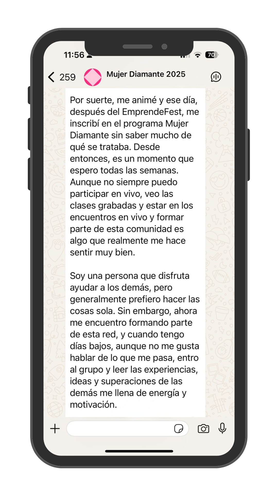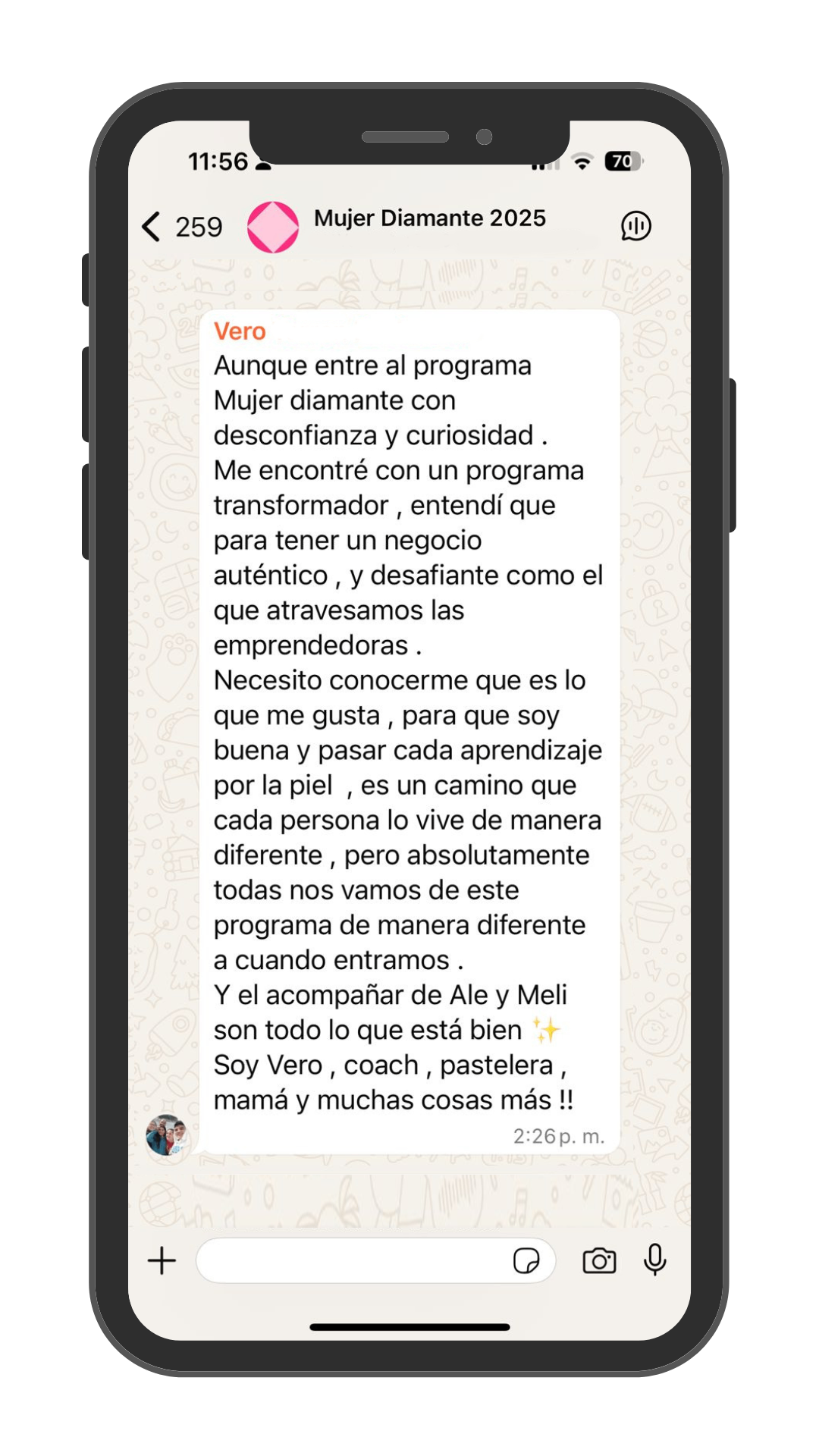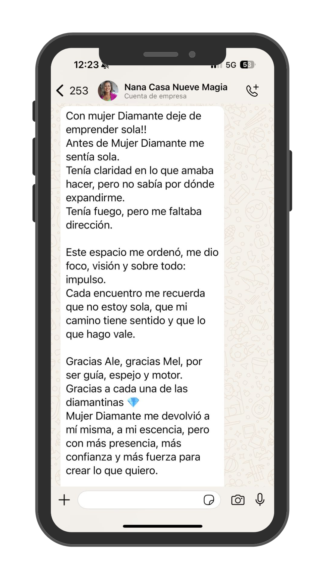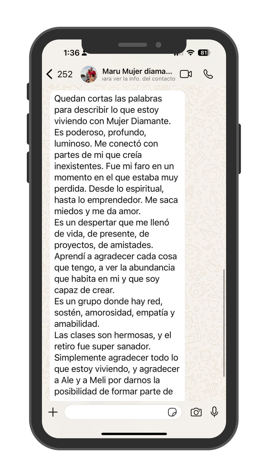 Grupo de WhatsApp exclusivo, donde estarás siempre acompañada y conectada con otras mujeres que, como vos, están transformando sus vidas.