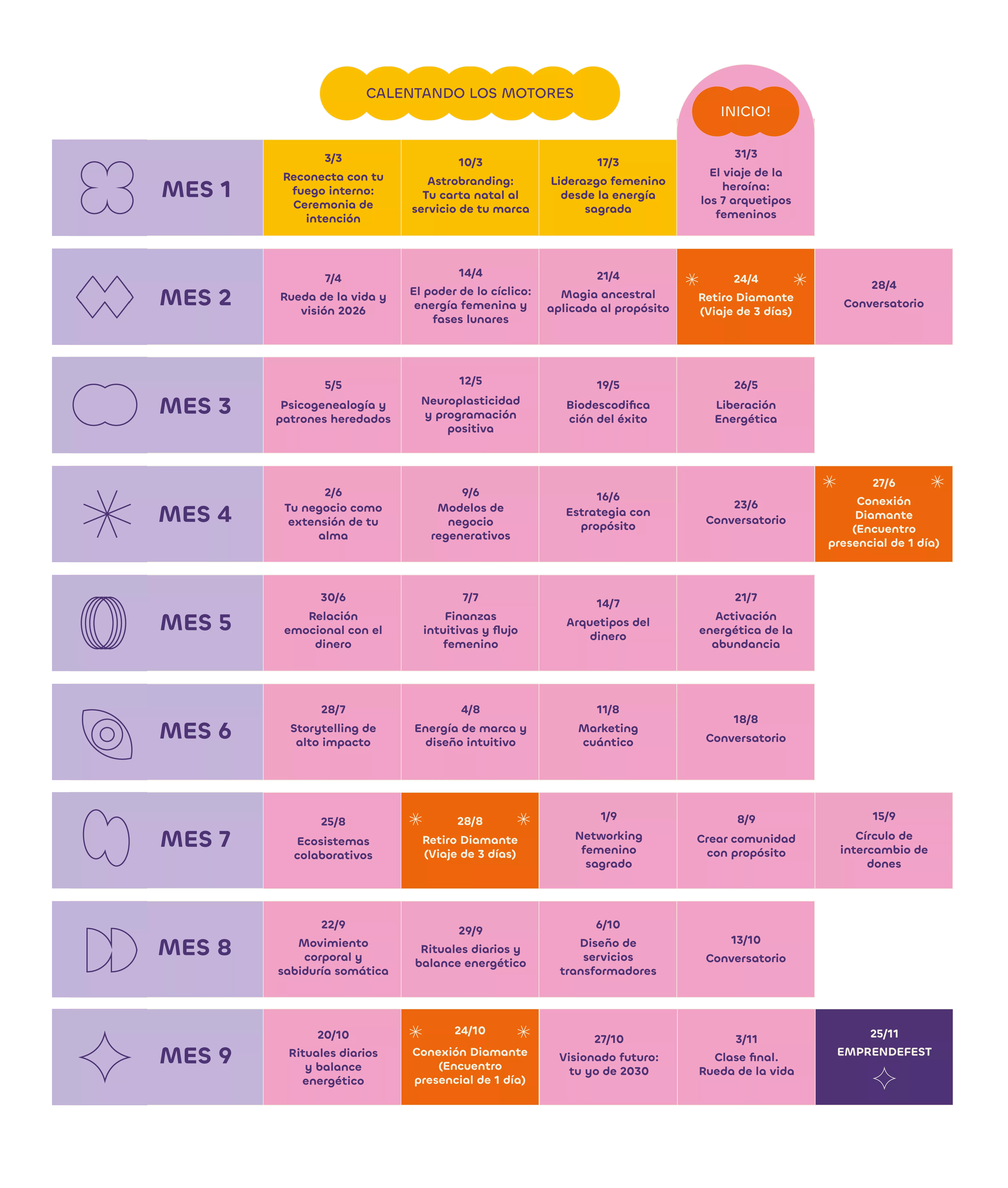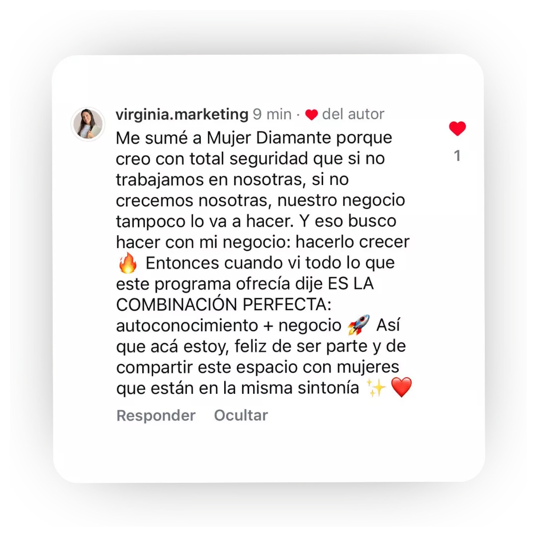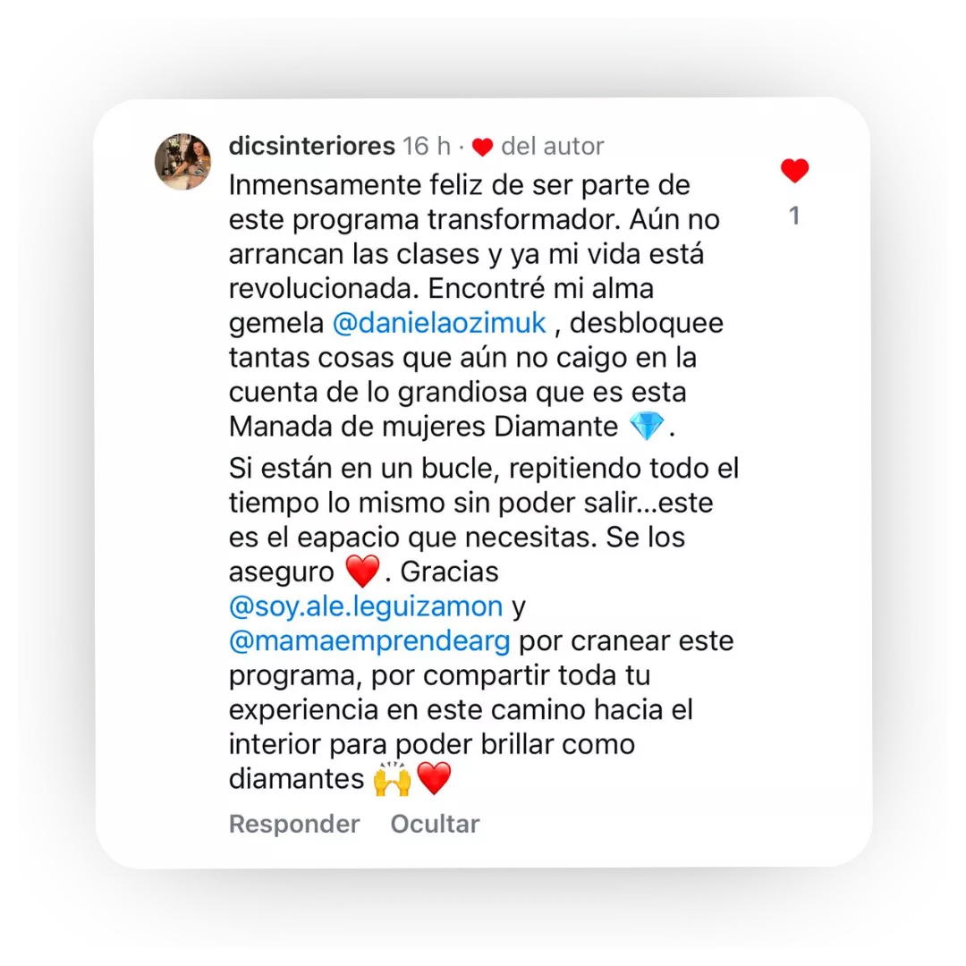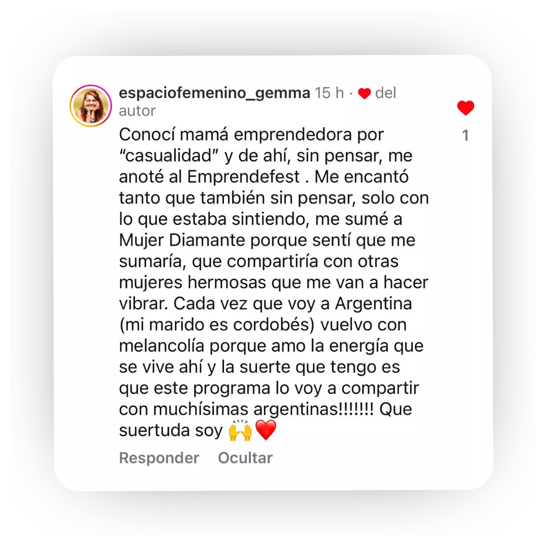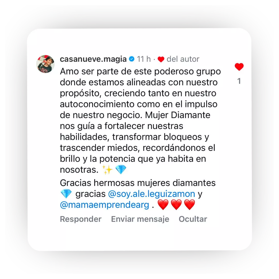 Tenés el sueño de dejar una huella positiva en el mundo y formar parte de una nueva generación de negocios conscientes. ¿Sentís que sos una Mujer Diamante que emprende con propósito? Aquí encontrarás el espacio, las herramientas y la comunidad para lograrlo.